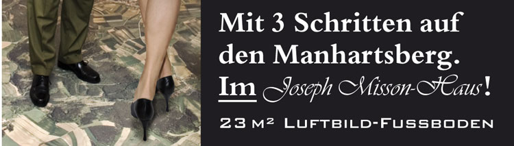 SONDERAUSSTELLUNG „Der Manhartsberg“ Besteigen sie mit wenigen Schritten den Manhartsberg! Im Joseph Misson-Haus ist dies bequem möglich. Ein 23 Quadratmeter großes Luftbild am Boden ermöglicht das Begehen der Landschaft. Eine Multimedia-Dokumentation und faszinierende Großformat-Fotografien auf Leinen zeigen die Schönheit des so oft verschmähten Berges.